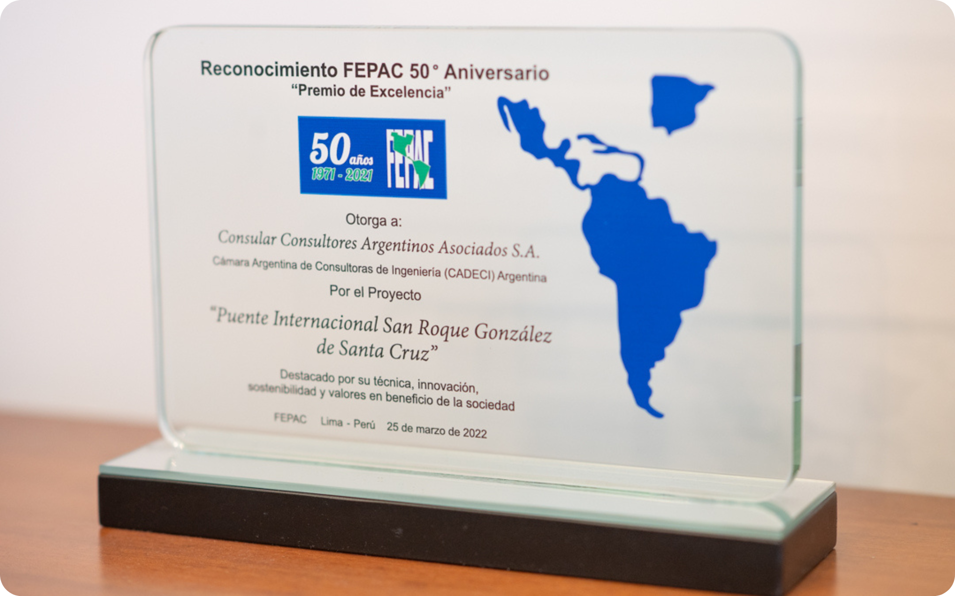 Desde la década del 70, CONSULAR ha sido protagonista en el diseño y cálculo de estructuras que marcaron la infraestructura argentina y regional. Entre ellas se destaca el Puente Internacional Posadas–Encarnación, reconocido internacionalmente por su aporte técnico y valor simbólico.